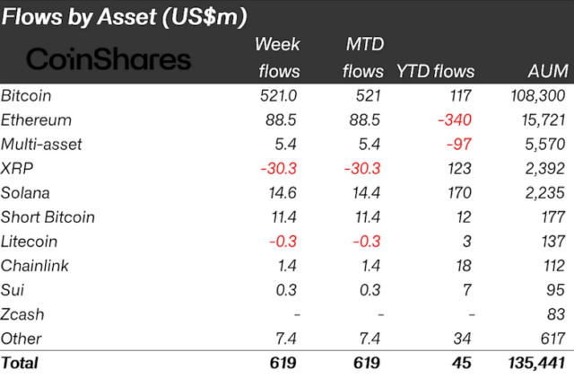また、同氏はアルトコインの投資商品にも広く資金が純流入したと指摘。特にイーサリアム(ETH)とソラナ(SOL)の商品への流入が相対的には際立っていたと説明した。