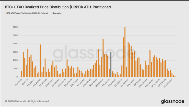 ビットコイン価格は現在、72,000〜82,000ドルの「薄い価格帯」に突入。このゾーンでは、過去の蓄積による供給量が少ないため、上限までは売り抵抗が限定的と考えられる。Glassnodeはビットコインがこの価格帯に突入したことは「心強い兆候」としながらも、一度の上昇だけではトレンドの転換を断定するのには不十分だと指摘している。