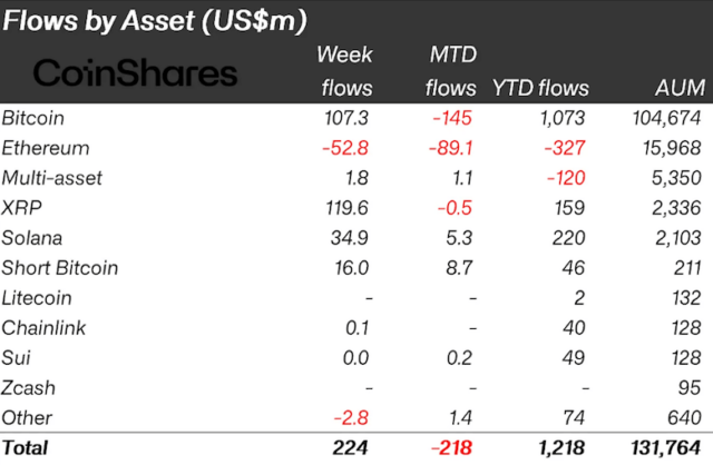 暗号資産(仮想通貨)に特化した資産運用企業コインシェアーズ(CoinShares)でリサーチ部門のトップを務めるジェームズ・バターフィル氏は7日、ETFなどのデジタル資産投資商品全体の先週における資金フローは、約2.2億ドル(約357億円)の純流入だったと報告した。