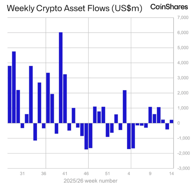 - 先週のデジタル資産投資商品への純流入額は約2.2億ドル