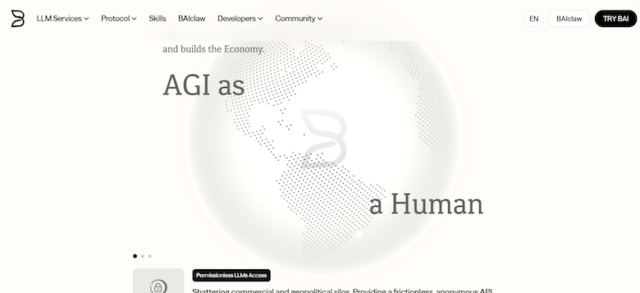 B.AIはAIエージェント向けグローバル金融インフラの構築に注力する。ブロックチェーン技術を活用し、パーミッションレスなモデルアクセス、統合APIオーケストレーション、エージェント間決済およびアイデンティティ検証というエージェント経済の中核課題に直接対応する。