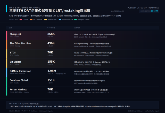 関連記事:ETHリステーキング「KelpDAO」攻撃で440億円以上が不正流出か 被害の原因は?