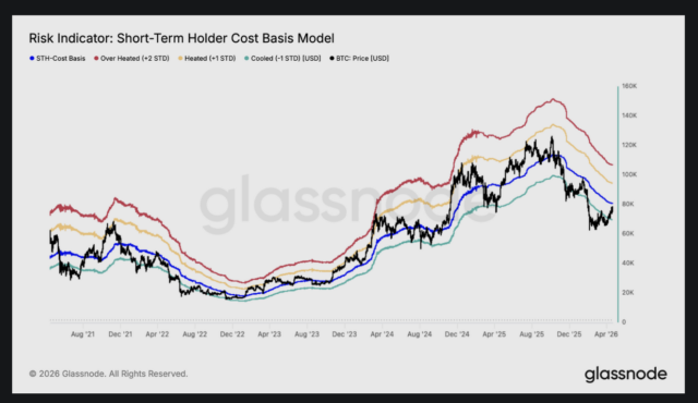 しかし、その先には短期保有者(過去155日以内に購入)の平均取得コストである80,100ドルの厚い壁が控えている。Glassnodeの分析によれば、この投資家層は価格に極めて敏感であり、価格が自身の損益分岐点に近づくと売却に動きやすいため、このゾーンでは売り圧が強まる。また、6万〜7万ドルで購入した層も損益分岐点に近づいたことで、含み損解消への安堵感が生まれ売り圧を強めるため、上昇の勢いを鈍化させ天井形成のリスクを高める。