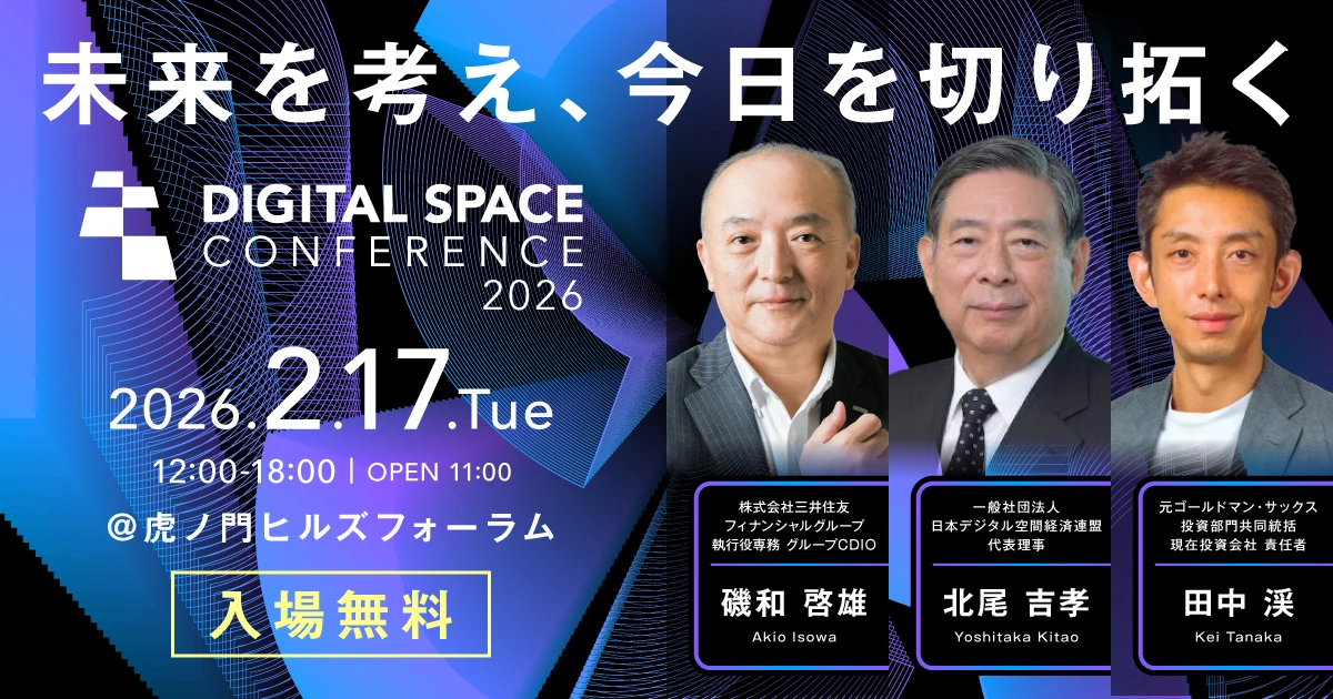 2月17日、虎ノ門ヒルズにて「DSC2026」が開催されます。AI・Web3・メタバース・量子技術など、最先端領域を産業横断で議論する大規模カンファレンスです。SBIグループ、三井住友FG、ソフトバンク、電通グループなど159団体が加盟する業界連盟が主催。