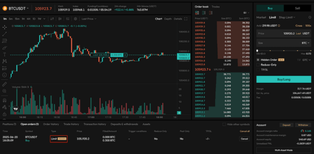 続いて、永久先物取引の操作方法を解説します。上述した隠し注文を例にします。