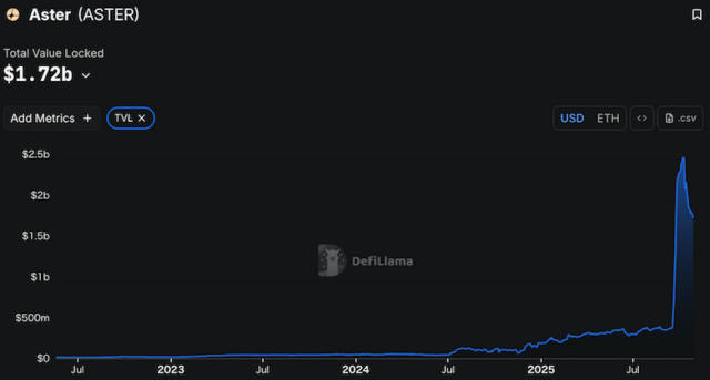 Asterの独自トークン「ASTER」はローンチ後に一時約1,300%急上昇するなど、大きな注目を集めました。以下は本記事執筆時点の「CoinGecko」における価格推移です。