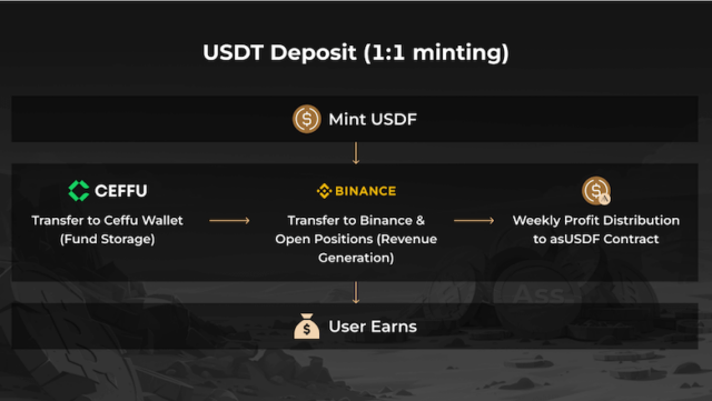 USDFの発行後は、準備資産となるUSDTは「Ceffu」というウォレットに預けられ、バイナンスで運用されます。バイナンスを運用に採用した理由は、流動性や効率性が高く、様々な取引戦略を実行できるからだとしています。