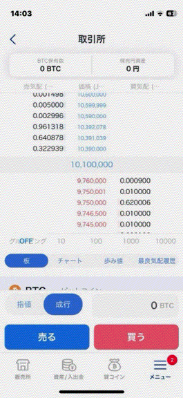 - 取引所:ユーザー同士の売買。板が厚いほど有利な価格で取引できる。