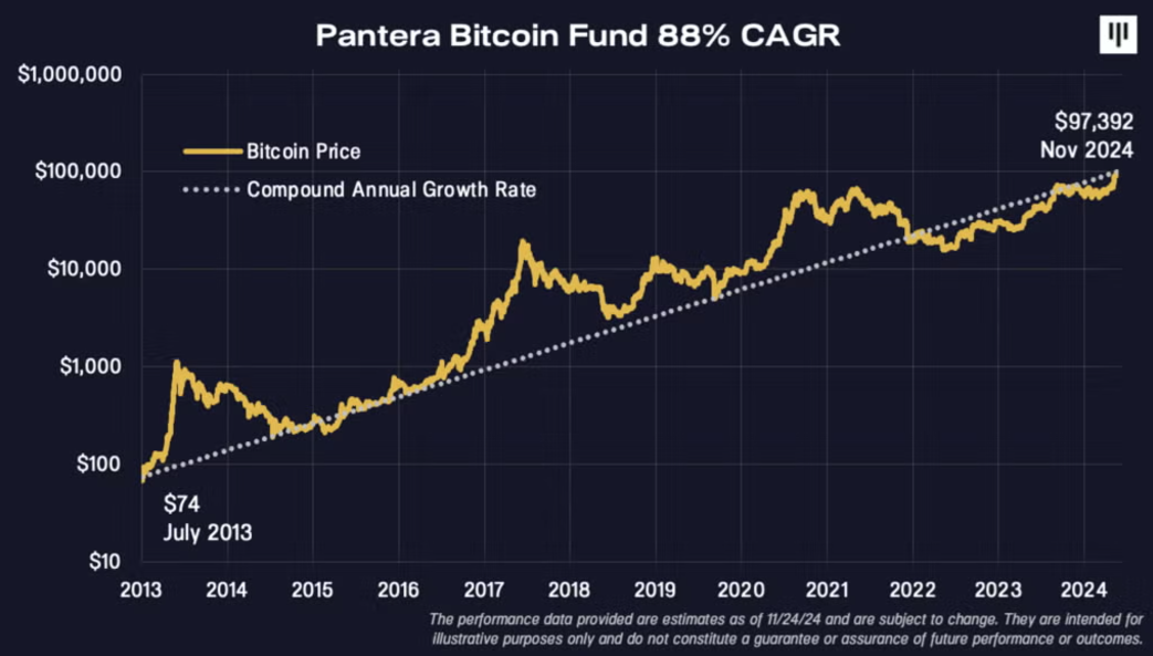 「ビットコインは平均すると毎年ほぼ2倍に成長。Pantera Bitcoin Fundファンドを11年前に設立して以来の複利成長率は88%」出典:Pantera Capital