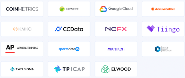 チェーンリンクの大きな魅力のひとつは、その多様なユースケースです。大手企業や金融機関が実際に採用しているため、信頼性が高いと評価されています。たとえば、以下のようなデータプロバイダーがチェーンリンクのオラクル機能をサポートしています。