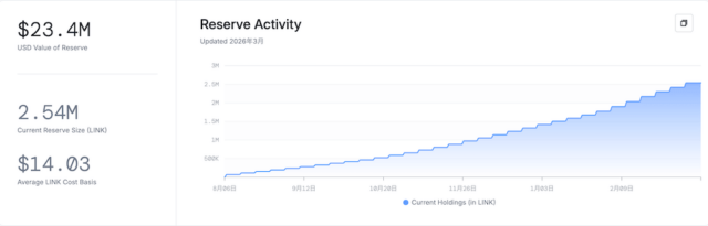 Chainlink Reserveは、2025年8月に発表されたネットワーク収益を活用してLINKの準備金を積み立てる取り組みです。開始から約8ヶ月が経過した2026年3月時点で、すでに約250万LINK(約2300万ドル相当)が蓄積されており、順調に積立が進んでいます。準備金の状況は公式サイトで確認可能です。
