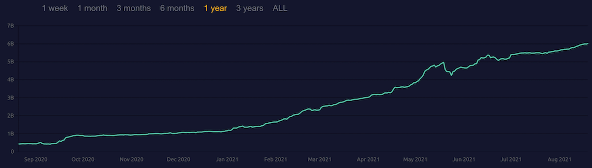 21年8月現在、Daiの需要が供給を上回っているため、DSRはほぼゼロに設定されています。