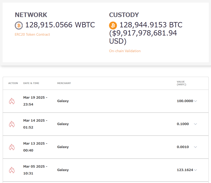 常にWBTCと裏付けとなるBTC残高が一致していることが担保されている 出典:BitGo
