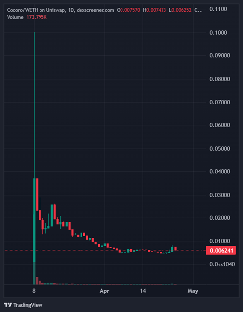 Cocoroはローンチ直後に時価総額8,000万ドルを超えましたが、その後急落。今後も値動きが激しい可能性が高いため、大きなリターンも損失も発生しやすい銘柄です。