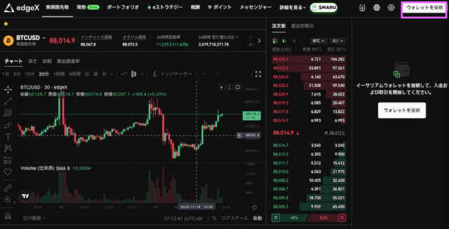 edgeXは、永久先物取引や流動性提供ができるDEXです。 操作画面は一般的な取引所に近く、DEXを初めて使う人でも始めやすい設計になっています。