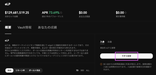 「eLP」は、edgeXで最初に提供される流動性提供用のVaultです。