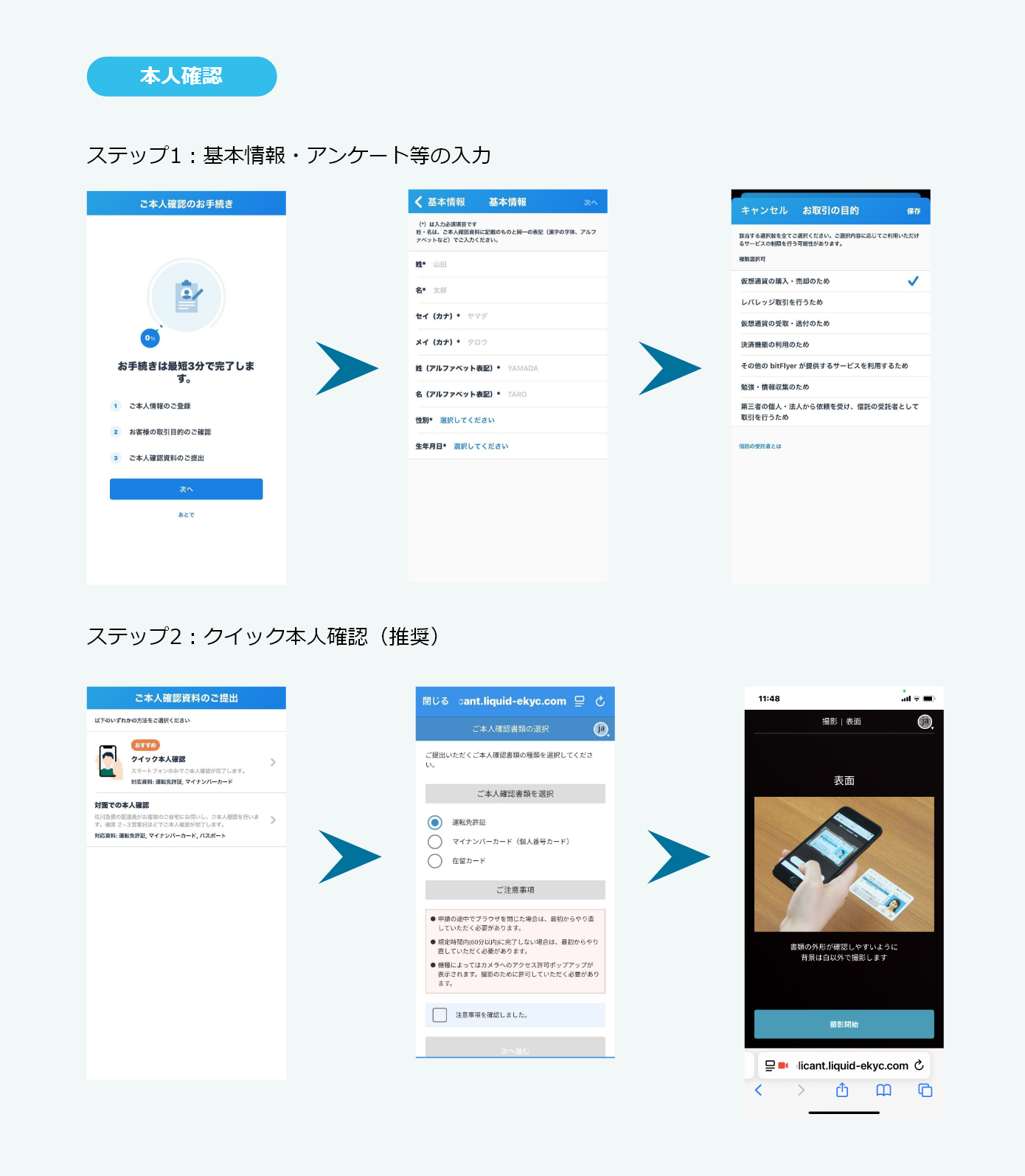 最短で申し込み当日中に本人確認審査が完了し、暗号資産(仮想通貨)のお取引が可能になります。登録する基本情報と、本人確認書類の内容が一致する必要があります。
