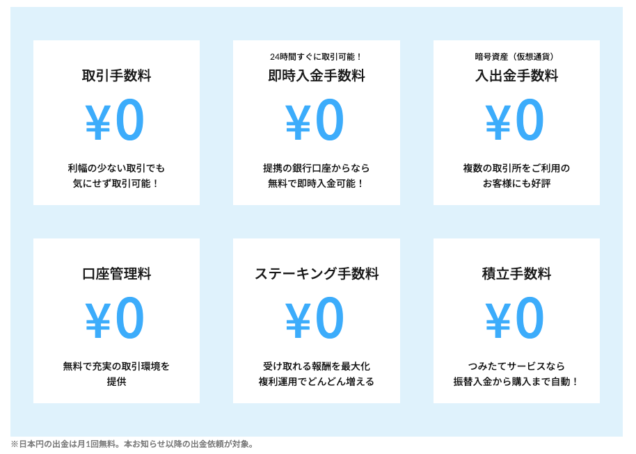 | 暗号資産の入出金手数料 | 入金(預入) | 無料 |