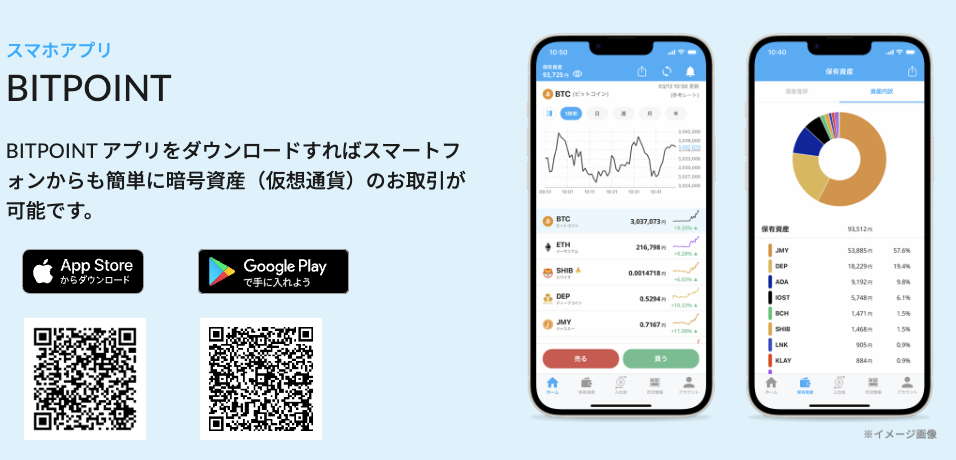 スマホアプリからBITPOINTを利用することができます。