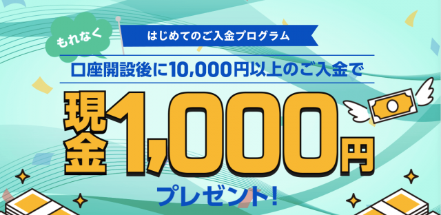 はじめてのご入金プログラム|口座開設後に10,000円以上のご入金で現金1,000円プレゼント
