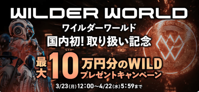| 国内初!WILD取り扱い記念〜最大10万円分WILDプレゼントキャンペーン | 最大10万円相当 | 〜4/22 | |