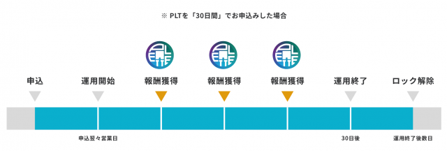 次に、コイントレードアプリから、ステーキングしたい銘柄・数量・期間を選択して申込みをします。これでステーキングの手続きは完了です。