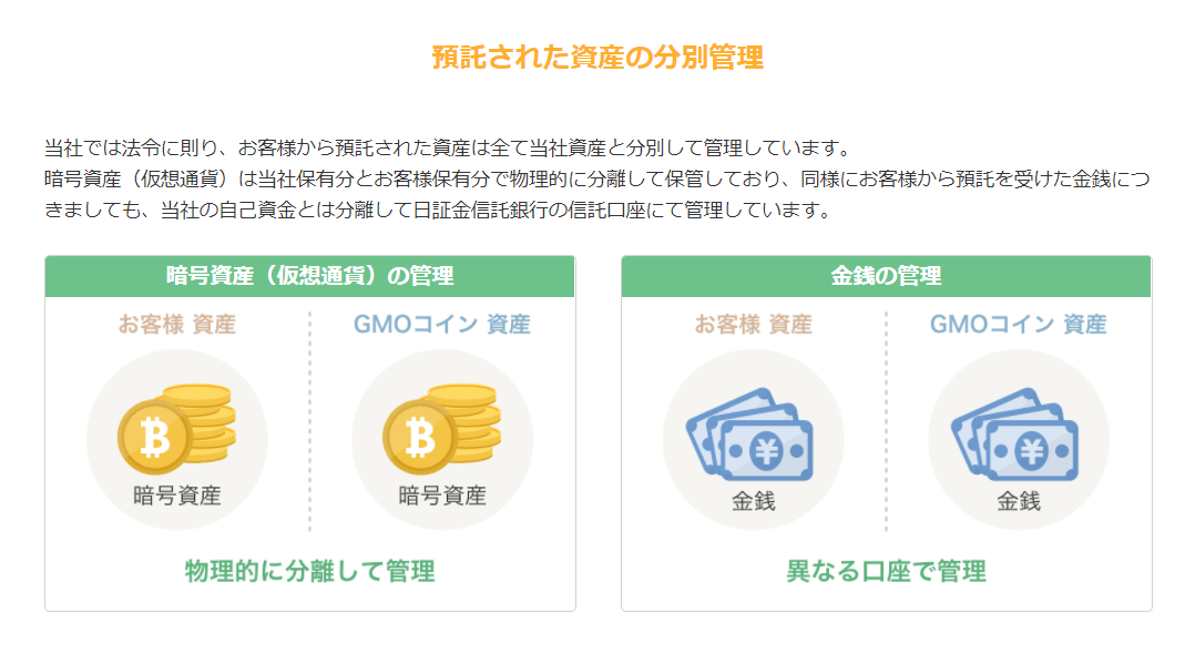 以前は、顧客資産の管理を徹底しておらず多くのトラブルが発生していました。しかし、新しく法令が整理され、顧客資産とGMOコインの資産を別々に管理する方針に切り替え、顧客資産の保護に注力し始めたのです。