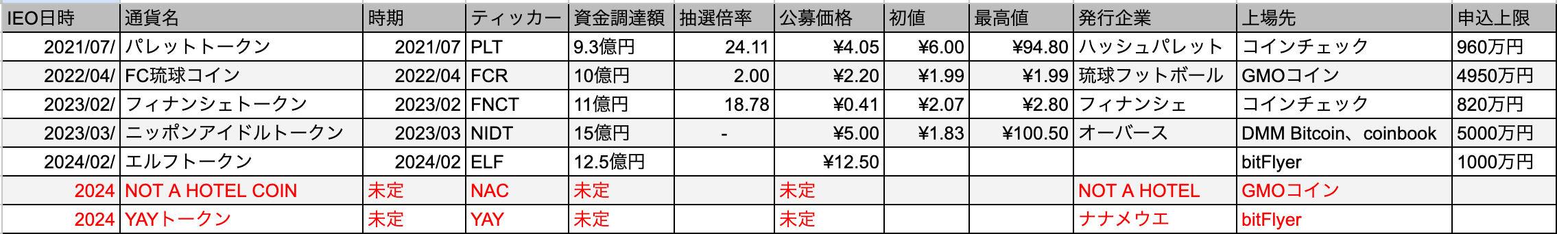 GMOコインのIEO実績