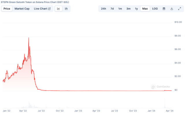 以下は、ソラナ上のGSTの価格推移。STEPNは最初にソラナブロックチェーン上にローンチされました。