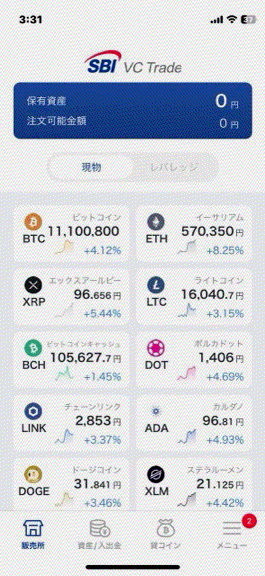 - ログイン: SBI VCトレードのアプリにログインします。