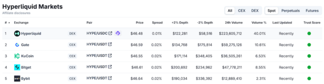独自の暗号資産(仮想通貨)であるHYPEは9月19日に最高値58ドルを記録し、時価総額ランキングで12位前後を推移。