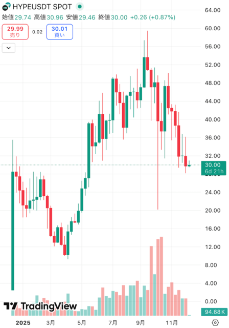 さらに、上場企業や機関投資家による積極的な投資が行われており、HYPEの信頼性や中長期的な価値に対する市場の評価が高まっています。こうした複数の要素が市場での需給バランスを引き締め、価格上昇を後押ししています。