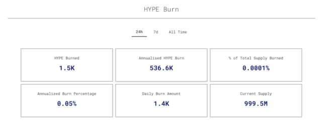 HYPEには、手数料収益を活用した買い戻しに加え、取引量に応じたバーン(トークンの永久消却)の仕組みも実装されています。