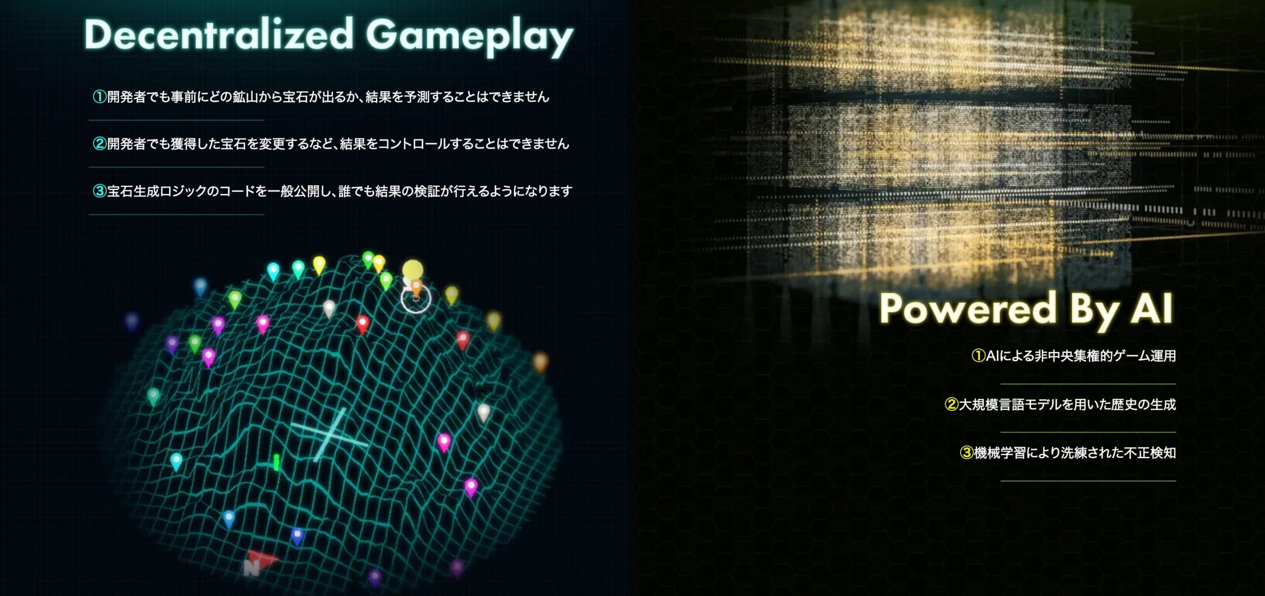 Brilliantcryptoの一部はAI駆動。分散型システムにより、ゲームの公平性が担保され、どの鉱山からどの宝石(NFT)が出るか予測不可能。機械学習による不正検知の仕組みも導入予定