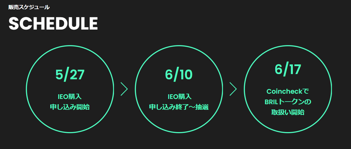 ブリリアンクリプトトークン(BRIL)は、コインチェックのIEOプラットフォームである「Coincheck IEO」において、2024年6月10日まで抽選申し込みを受け付けています。