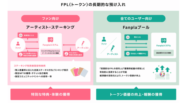 - アーティスト・ステーキング:ファンが特定のアーティストのステーキングプールにFPLを預けることで、チケット先行販売や限定NFT、特典イベントへの招待など、特別なユーティリティを受け取ることができる。