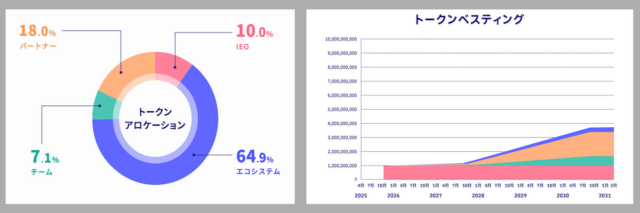 また、エコシステム向けの64.9%は、ファンやアーティストへの報酬プールとして段階的に放出される計画で、経済圏の拡大に応じて利用される。IEO販売分については上場時点から流通可能となるため、初期の市場流動性が確保される見込みだ。