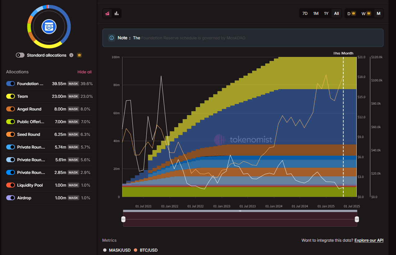 なお、2025年5月時点で予定されていたトークンのアンロックはすべて完了しています。今後の未流通分の管理については、分散型自律組織(DAO)であるMaskDAOが運営するFoundation Reserveによって行われます。