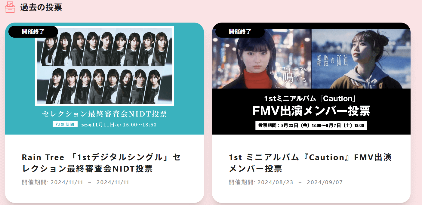 - 投票機能:NIDT保有者は「NIDTポータル」を通じて、保有量に応じた投票権を持ち、アイドルグループの選抜や楽曲、イベント内容などの意思決定に参加できます。ファンが運営に直接関われる仕組みです。