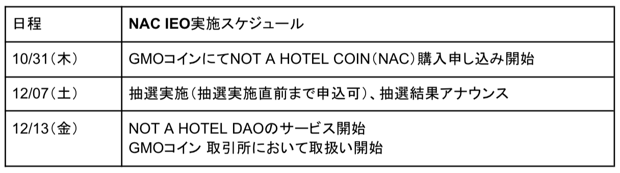 関連:NOT A HOTEL COIN(NAC)の買い方、GMOコインのIEO参加方法