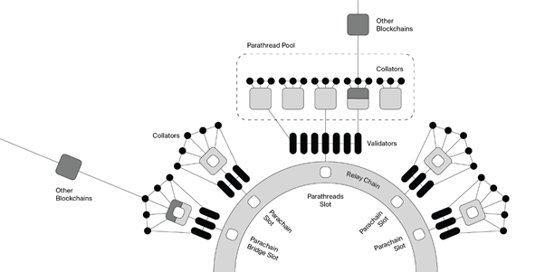 パラチェーン同士でメッセージおよびトランザクションを送受信することも可能です。各パラチェーンは、コレーター呼ばれるノードによって管理されています。