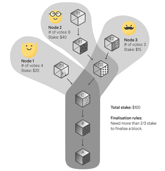 またGRANDPAでは、3分の2以上のバリデータが承認したブロックのファイナリティを保証していますが、バリデーターは各ブロックではなく、複数のブロックを含むチェーンをまとめて承認します。これにより、ファイナリティ形成プロセスが格段に速くなります。