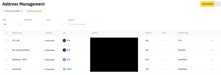 送金ミスを防ぐもう1つの手段として、ホワイトリスト(送金先の登録)の利用が挙げられます。