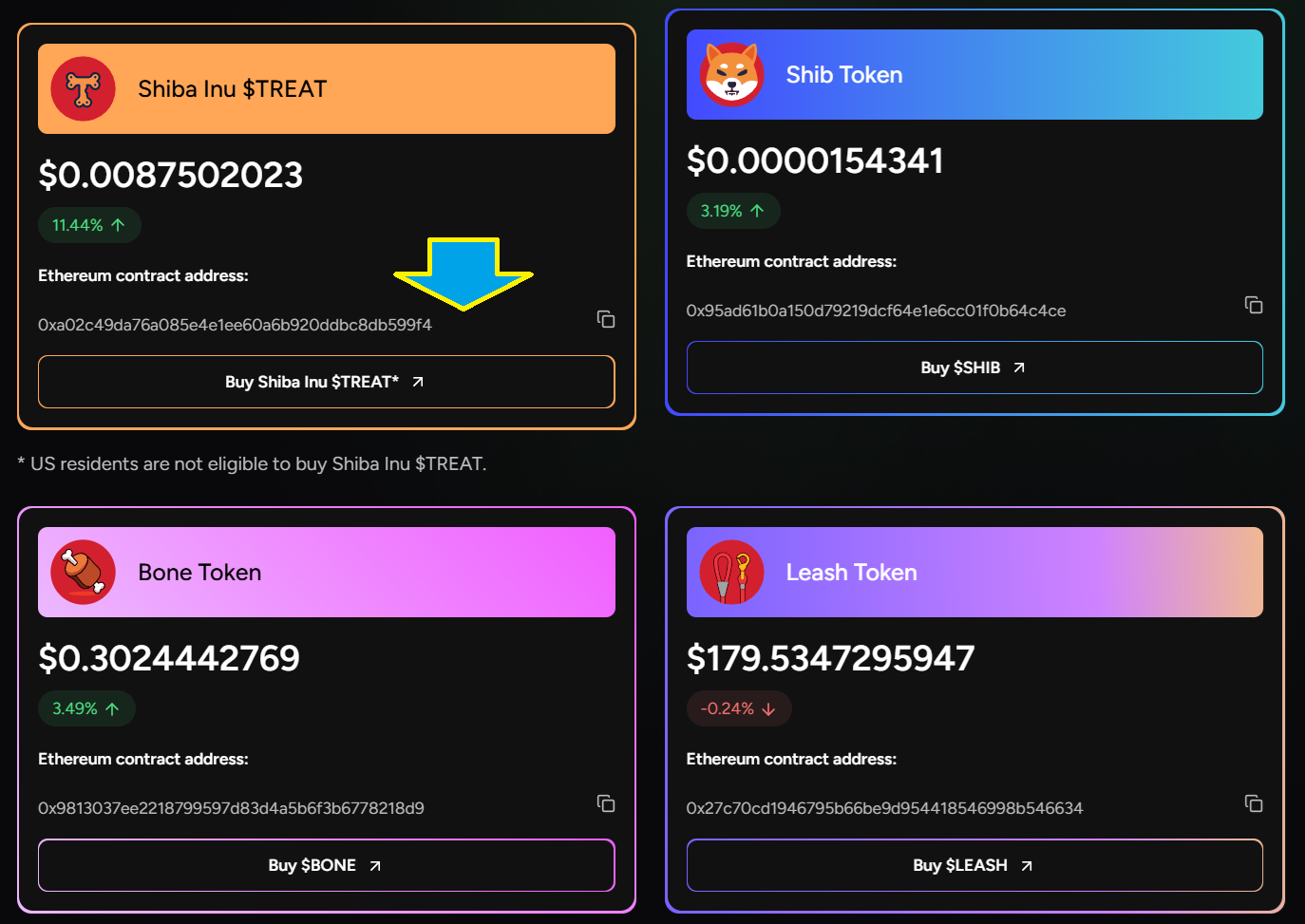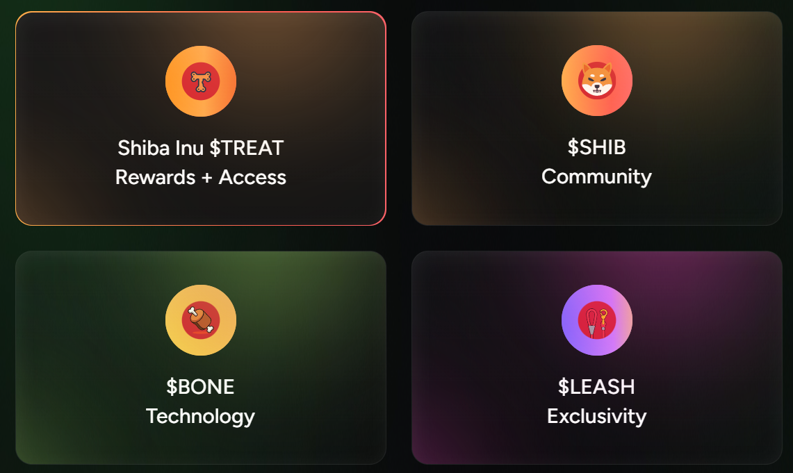 - SHIB:基軸ミームトークン・コミュニティシンボル。TREATはSHIBの「代替」ではなく、補完的なものと位置付けられます。