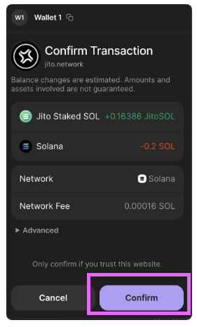 - 受け取るJitoSOLの金額を確認する(+金額)