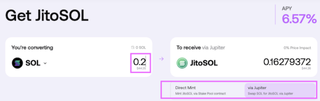2.Via Jupiter(Jupiter経由): Jupiter DEX経由でSOLをJitoSOLに交換
