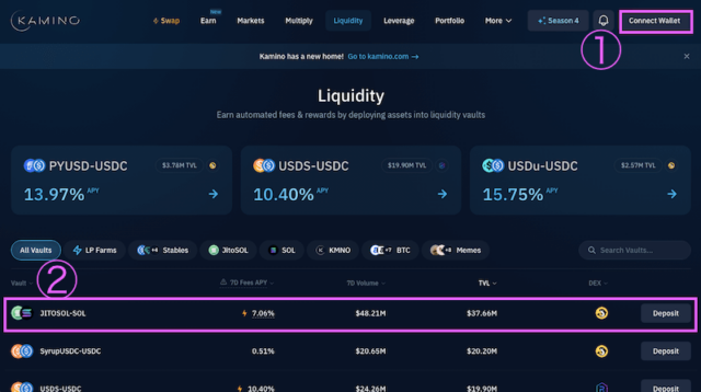 では実際にKaminoでSOL-JitoSOLの流動性を提供してみましょう。