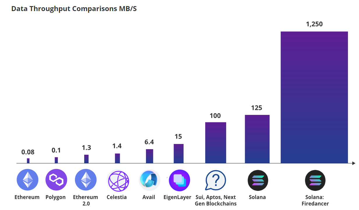 VanEckが強気シナリオの根拠とするのは、ソラナの圧倒的な処理性能です。現在でも他のブロックチェーンを上回るデータスループットを持ち、アプリケーションの取引処理をより高速かつ使いやすくできると分析しています。