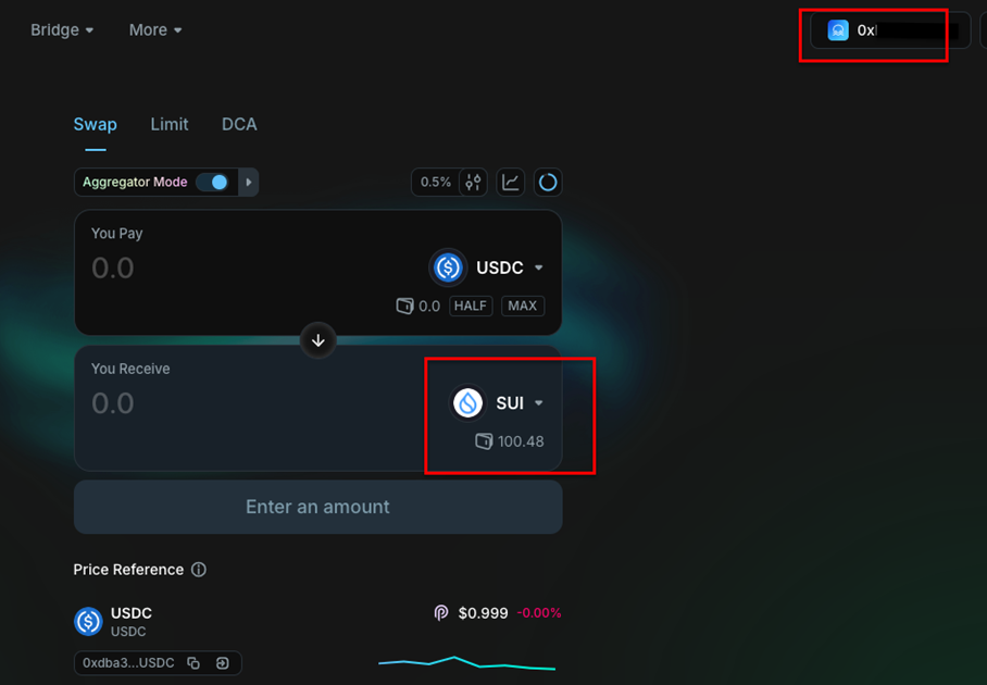 ウォレットの接続が完了したら、Cetus AMM上でSUIをWALなどのトークンに交換(スワップ)することができます。