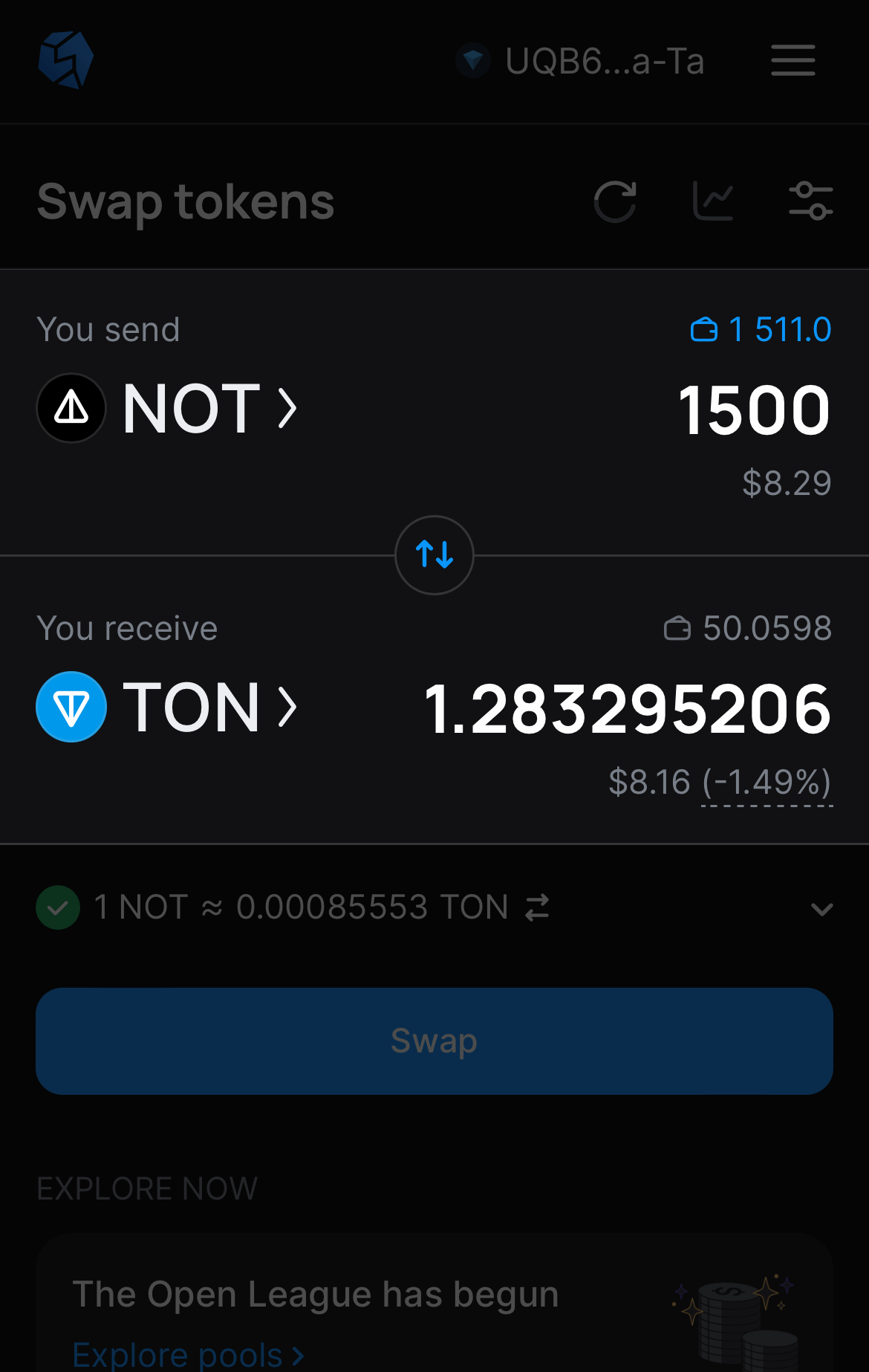 これらのDEXは、テレグラムウォレットアプリに接続可能なので、NOTからTONやUSDTへのスワップをスムーズに行えます。